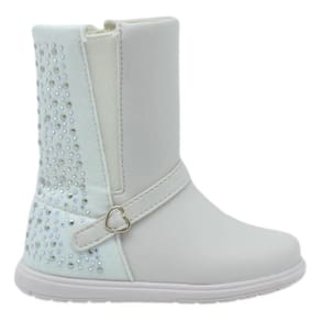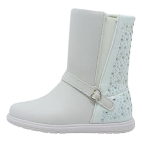 Bota infantil em sintético nude com parte traseira em glitter, elástioco na lateral para melhor se ajustar na perninha e aplicação de Brilho em hotfix, um modelo delicado e moderno! Forro interno que auxilia na absorção do suor. Palmilha Feet Care que possui um sistema avançado de fofura, com a densidade ideal para os pés, minimizando impactos. Bota infantil com solado em TR, que apresenta muita aderência e estabilidade, além da flexibilidade, resistência térmica e alto desempenho. Bota com abertura lateral através de zíper, facilitando o calce para as mamães e escrita em braile indicando os lados direito e esquerdo Bota lúdica versátil e divertida para aquecer os pezinhos da menina neste inverno! A botinha que vai ganhar o coração das mamães e compor diversos looks!