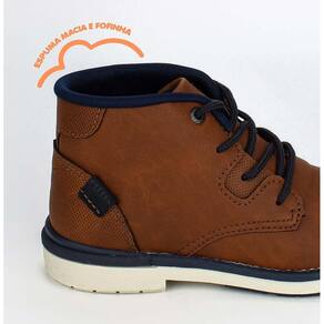 Bota Infantil estilo Coturno Masculino é o calçado perfeito para compor looks casuais e aventureiros. Conforto, Estilo e Resistência são as principais características desse modelo de coturno que chegou com tudo. Desenvolvido com materiais de alta qualidade, macio e flexível ele traz tudo que os pequenos precisam na fase dos Passos Fortes. A sola emborrachada antiderrapante além de ser bem resistente também é antiderrapante concedendo maior segurança e cuidado para brincar, correr e se divertir. O fechamento com cadarço concede um melhor ajuste do modelo ao pé trazendo pisadas mais seguras e firmes.