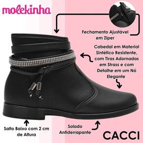 A Bota Molekinha é sinônimo de delicadeza, estilo e conforto para acompanhar as pequenas em todas as ocasiões. Com um visual encantador, ela combina modernidade com detalhes sofisticados que fazem toda a diferença no look. Seu cabedal, confeccionado em material resistente e suave, conta com tiras enfeitadas por delicados strass e acabamento em nó, oferecendo um toque especial que eleva qualquer produção com muito charme e elegância.