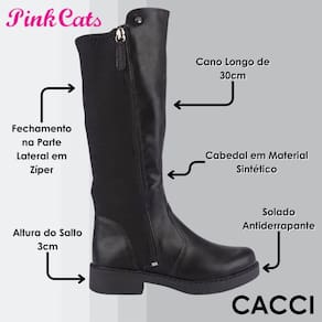 A Bota Pink Cats Cano Longo é a escolha ideal para meninas que desejam estilo e conforto no dia a dia. Com um design moderno e clean, este calçado apresenta um cano longo de 30cm de altura e um salto bloco de 3,0cm, proporcionando elegância e atitude ao visual.