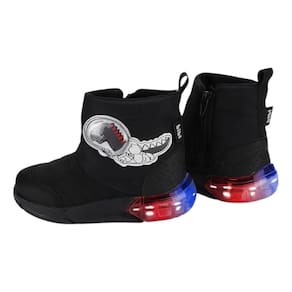 Procurando uma bota quentinha e estilosa para seu pequeno? Apresentamos a Bota Infantil Masculina Preta com estampa de Dino e luzes, perfeita para os meninos que amam aventuras jurássicas e querem se destacar em cada passo! Confeccionada em poliéster, ela é leve, respirável e oferece liberdade de movimento, além de proporcionar maciez e conforto ao caminhar. O calce fácil garante praticidade no dia a dia, tornando essa bota uma excelente aliada para as brincadeiras e atividades escolares.