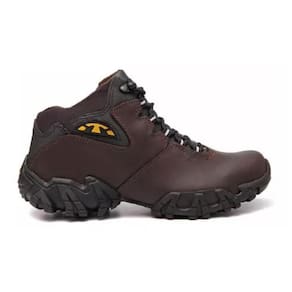 - Material: Couro natural resistente à água. - Palmilha: EVA antibacteriana, garantindo conforto e higiene. - Sola: Borracha antiderrapante com costura reforçada. - Fechamento: Cadarço ajustável para maior segurança. - Tecnologia: POWER GRIP para máxima tração.