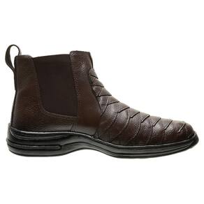 A bota chelsea masculina de cano médio, é uma opção elegante para ocasiões formais e semiformais. Confeccionada em couro, o seu design clássico e atemporal é acentuado pelo fechamento em elástico, que não apenas proporciona um ajuste personalizado, mas também adiciona um toque de sofisticação ao calçado. O couro possui uma estética refinada com detalhes escamados, enquanto o cano médio oferece um equilíbrio entre estilo e praticidade. O solado de borracha, além de proporcionar conforto durante o uso, garante aderência em diferentes tipos de superfícies. Seja para um evento social ou para o ambiente de trabalho, essa bota social é a escolha ideal para quem busca elegância sem abrir mão do conforto e da versatilidade.