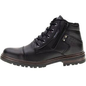 A Bota Masculina Coturno Garagem Confort Wonder é feita em material resistente com acabamento em costura, fechamento por cadarço e zíper lateral, forro interno em têxtil, palmilha em EVA e solado em borracha antiderrapante. É um calçado casual bastante confortável e prático.