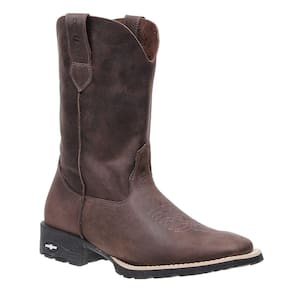 Bota masculina Cow Way fabricada em couro na cor Café, possui cano alto, bico quadrado com florão costurado no peito do pé, vira com costura dupla e solado de borracha.