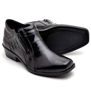 Bota Masculina Couro Cano Curto Zíper Detalhe Costuras - 39 - Preto