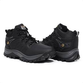 Bota Masculina Couro Coturno Aventura Confortável Trilha - 41 - Preto