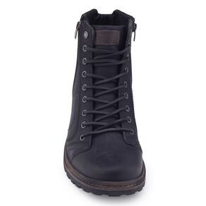 Para aqueles que amam uma aventura, este modelo é o ideal. Com seu cabedal confeccionado em couro, possui costuras aparentes em azul como detalhe decorativo, zíper nas duas laterais do calçado facilitando na hora do calce e um grande diferencial é ter duas opções de cadarço, um de material têxtil e outro em tira de couro. Seu solado é tratorado aumentando a segurança ao caminhar, com 3cm e sua palmilha é fixa em EVA.