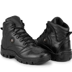 Coturno Masculino Couro Cross Preto Com Relogio e Carteira - Adventure Shoes