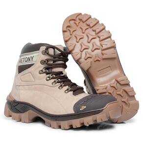 Bota Masculina em Couro com Solado Especial Durabilidade e Elegância em Cada Passo - 45 - Bege