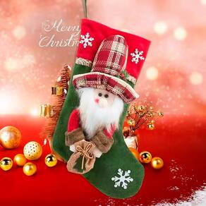 Bota Meia Decoração Enfeite Natalino Papai Noel Feltro 43cm -