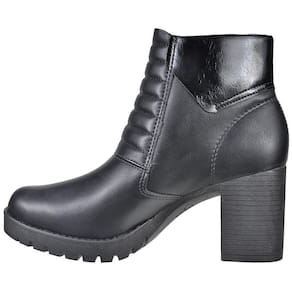 A bota de cano curto e salto bloco é uma opção versátil para o dia a dia e momentos de lazer.