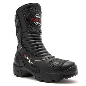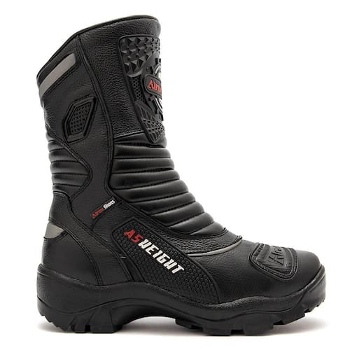 Bota motociclista confeccionada em couro, oferecendo alta resistência, durabilidade e conforto durante o uso. Possui design robusto com proteção reforçada na região do tornozelo e do peito do pé, além de acolchoamento anatômico para maior segurança e comodidade. Conta com fechamento em zíper lateral, que facilitam o calce e garantem melhor ajuste. Solado antiderrapante, ideal para pilotagem com estabilidade e firmeza.