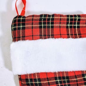 Bota Natalina Xadrez Vermelha E Preta 45x19cm Natal