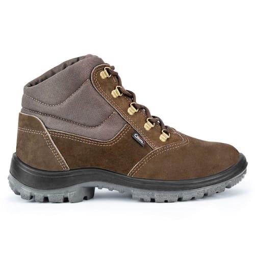 Bota com cardaço na cor café numero 39 da crival linha plus produzida em couro nobuck, solado constituído de duas camadas de poliuretano (PU) expandido bi-densidade, injetado diretamente no cabedal, possui característica antiderrapante e palmilha antimicrobiana, sistema de absorção de impacto. O modelo é ideal para trabalhos na área agrícola, sendo confortável e protegendo contra riscos de impacto, cortes, compressões e perfurações de natureza leve.