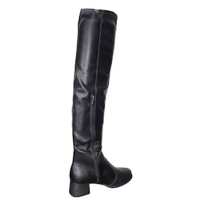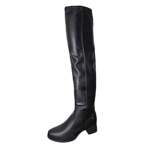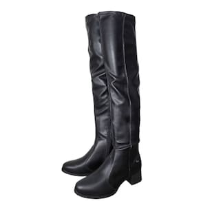 O cano de 56 cm de altura com 23 cm de circunferência conta com material maleável que facilita o calce e proporciona um ajuste firme e confortável, além de seu fechamento prático la lateral fazendo com que se encaixe perfeitamente. Já o salto bloco de 5 cm oferece estabilidade e estilo em cada passo.