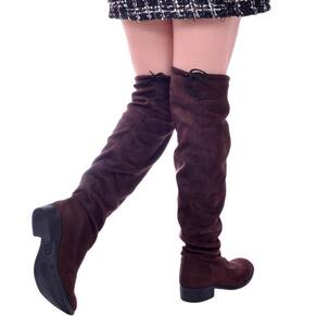 Bota Over Feminina The Knee Cano Longo Salto Baixo Moda - 35 - Marrom