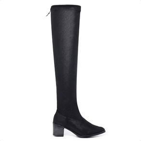 Bota Over The Knee Bico Fino Salto Baixo Elástico Moderna - 36 - Preto