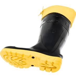 -Material: PVC (policloreto de vinila) preto com solado amarelo