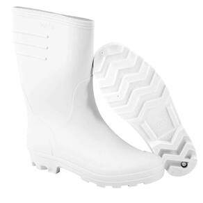 Bota de pvc galocha de borracha branca antiderrapante faxina com forro vonder Cor: branco Tamanho: 41 Bota de pvc com forro cano médio branca vonder Possui resistência ao escorregamento em piso de cerâmica contaminado com lauril sulfato de sódio detergente e piso de aço contaminado com glicerol src . Confeccionada em pvc injetado, impermeável e sem gola. Indicada para proteção dos pés do usuário contra riscos de natureza leve, contra agentes abrasivos e escoriantes, e contra umidade proveniente de operações com uso de água. Utilizada para atividades de lazer, aviários, apiários, restaurantes, indústrias alimentícias, entre outros. Itens inclusos: 01 par de botas. Características do produto: - marca: vonder; - atenção: não utilizar para combate a incêndio; - certificado de aprovação: 43107; - cor: branco; - massa aproximada do produto: 1,935 kg; - material do calçado: pvc; - material do solado: pvc; - possui forro: sim; - tipo de biqueira: sem biqueira; - tipo do cano do calçado: cano médio. - medida do cano do calçado: - 36 = 25 cm - 37 = 26 cm - 38 = 27 cm - 39 = 27 cm - 40 = 28 cm - 41 = 29 cm - 42 = 29 cm - 43 = 30 cm - 44/45 = 31 cm : 02 meses contra defeitos de fabricação. Marca: Não Informado