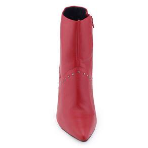 Bota de salto alto Tanara T7723 Belmy Malagueta é um lindo modelo vermelho de salto geométrico e cano baixo que te acopanhará em diversos looks. É uma linda bota social de bico fino com o cabedal fabricado em couro e acabamento em recortes e costuras, tem como detalhe aplicação de tachas metalizadas quadradas no cabedal. Internamente é forrada proporcionando conforto, tem a palmilha fixa, macia e revestida. A bota traz um bom encaixe ao pé e o fechamento é por ziper na lateral interna. Seu bico é fino, reforçado com detalhe metal dourado em baixo, o salto alto geométrico possui acabamento em verniz brilhante e tem 9cm de altura, seu solado possui frisos para maior segurança.