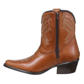 Uma Bota feminina modelo Texana da nossa marca exclusiva Cow Way, esta peça é fabricada em couro de alta qualidade, possui cano curto trabalhado, bico fino com florão costurado e vira com costura altamente resistente, também um solado de borracha trabalhado resistente.