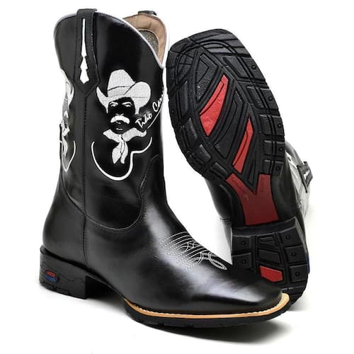 A Bota Texana Masculina Fakcini é totalmente versátil, e te permite criar várias produções com muito estilo e conforto. Confeccionada em couro, garante durabilidade e qualidade. Seu acabamento bordado, garante um visual marcante e diferenciado para os homens apaixonados pelo estilo country. Possui um cano longo com um formato V na frente e atrás que deixa o processo de calçado mais ágil e prático. Perfeito para fazer combinações para situações de lazer, como rodeios, shows e baladas.