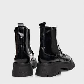 Bota chelsea de couro com visual loafer. Possui acabamento em verniz, solado tratorado robusto, elástico lateral e puxador traseiro para facilitar o calce. Essa versão também conta com um detalhe frontal estilo gravata, trazendo um charme para o modelo. FEITO EM COURO.