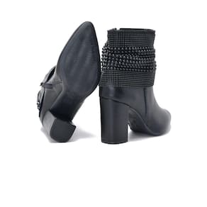A Bota Via Marte Salto Alto Feminina Cano Baixo Miçangas Preto vem com salto alto bloco e bico fino. O modelo de cano curto, traz uma malha de enfeite no cano e zíper no lado interno para auxiliar na hora de calçar proporcionando conforto, elegância e modernidade ao look.