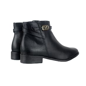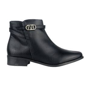 VIA UNO Sobre a marca: A Via Uno acompanha as principais tendências e lançamentos da moda mundial com o lifestyle urbano e moderno, oferecendo calçados versáteis, diversos estilos e muito conforto para a mulher contemporânea. Bota feminina confeccionada em material sintético. Possui cano curto, salto baixo grosso, fechamento por zíper lateral e bico quadrado.