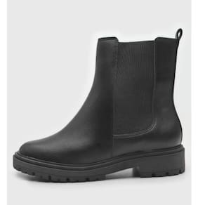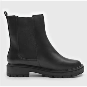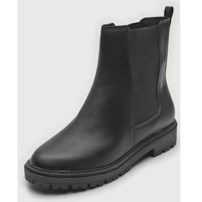 Seu cabedal em cor única contém detalhes de costuras aparentes e aplicação em elástico nas laterais facilitando o calce.