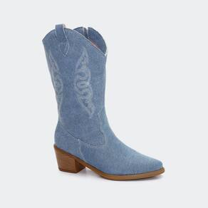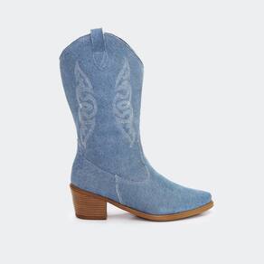 Bota Western Feminina em Couro Bordada Cano Médio Texana - 40 - Azul Claro