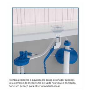 O Botão Acionador Superior para Caixa Acoplada da Blukit é indicado para instalação na parte de cima das caixas, controlando o fluxo de saída de água para a bacia sanitária. Características do Produto - Instalação: furo de 32 mm a 64 mm; - Acompanha corrente plástica.
