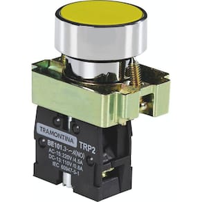 O Botão de Impulso Tramontina proporciona maior segurança no controle de máquinas e circuitos elétricos. A cor amarela no botão sinaliza inverter o sentido ou cancelar a operação. Orientações IP40 Características Gerais EAN13 7891435935769 DUN14 17891435935766 NCM 8536.50.90 Peso Líquido 0,0618 kg. Peso Bruto 0,0678 kg. Metragem 0,000066 m³. Dimensões Embalagem (Compr. X Larg. X Alt.) 40x 30x 55 mm. Dimensões Produto (Compr. X Larg. X Alt.) 40x 30x 55 mm. Cor 1 FFCC66 Hexa Observações Recomenda-se a instalação por pessoal capacitado, seguindo todas medidas de segurança em instalações elétricas.