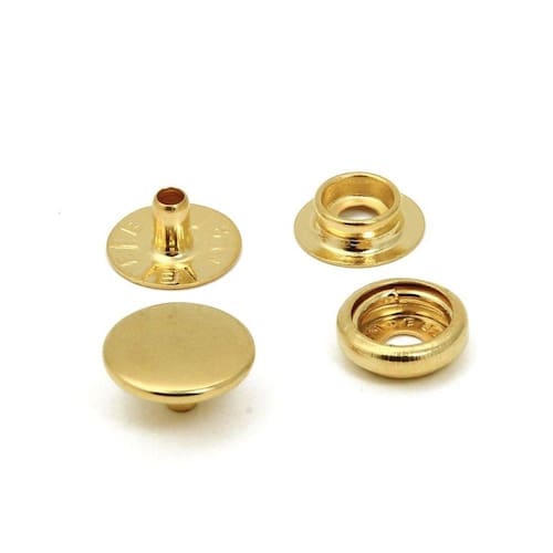 Botão de Pressão FN 1002/80 Dourado - 50 UnidadesBotão de pressão é utilizado com a finalidade de fechar um sistema de encaixe por pressão. Aplicado em diversas áreas, este botão de pressão está presente em bolsas, mochilas, peças esportivas, tecidos médios ou pesados e também pode ser utilizado em capas de carros, barcos e entre outros, auxiliando na proteção. DADOS TÉCNICOS:Quantidade: 50 UnidadesDiâmetro superior: 13 mmMatriz para este botão - Matriz de pressão /80 ( Produtos com material base em ferro podem apresentar oxidação de acordo com o tipo de aplicação )Composição: 100% Ferro