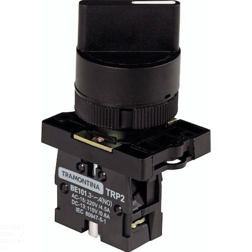 O Botão Seletor Tramontina possibilita sua aplicação nas mais diversas funções, como: ligar/desligar, habilitar/desabilitar, reversão de motores, entre outras. Orientações . Características Gerais EAN13 7891435935974 DUN14 17891435935971 NCM 8536.50.90 Peso Líquido 0,0391 kg. Peso Bruto 0,0441 kg. Dimensões Produto (Compr. X Larg. X Alt.) 40x 30x 70 mm. Cor 1 0000000 Hexa Observações Recomenda-se a instalação por pessoal capacitado, seguindo todas medidas de segurança em instalações elétricas.