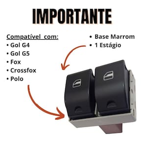 • 01 Botão de Vidro Elétrico Duplo Gol G4, G5,Fox, Crossfox, Polo - 1 Estagio (Fundo Marrom)