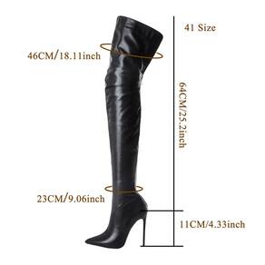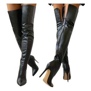 Botas de cano alto Holzkary para mulheres, couro sexy acima do joelho, salto alto, botas longas com zíper, botas altas sensuais, pretas 7 a