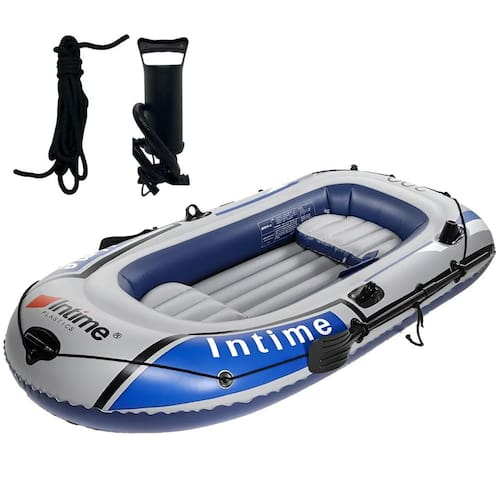 O Bote Inflável INTIME foi feito para quem busca lazer com conforto, segurança e praticidade. Com design moderno em cinza com detalhes em branco, ele é perfeito para curtir com amigos, família ou simplesmente relaxar navegando pelas águas cristalinas, ideal para PESCA e outras atividades de CAMPING.