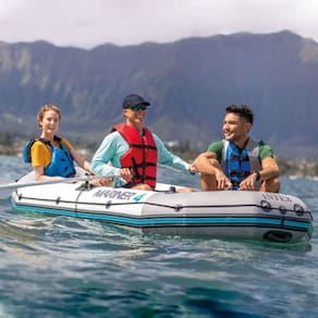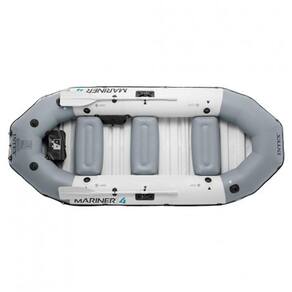 O Bote Inflável Mariner 4 Intex é um bote profissional que aceita motorização de até 3hp, instalado com suporte (vendido separadamente). Suporta até 500kg. Possui quilha central, suporte para remos giratórios (já incluídos) e acentos removíveis.