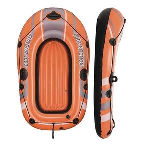 O bote inflável Kondor 1000 da Bestway é um modelo inflável para crianças Fabricado em material resistente, ele possui suporte para remos e corda de reboque com olhal integrado.