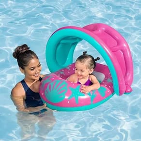 Indicado para crianças de 6 a 18 meses, é perfeito para uso em piscinas, praias, clubes, casas de campo ou viagens, oferecendo estabilidade e liberdade durante o banho ou brincadeiras aquáticas.