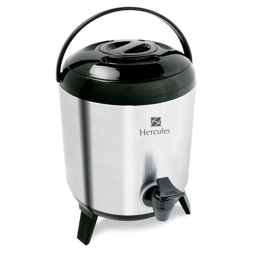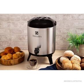 Botijão Térmico Hércules 7,7 Litros em Aço Inox, com torneira para servir, pés dobraveis e alça para transporte. Revestimento externo em aço inox e depósito em alumínio.