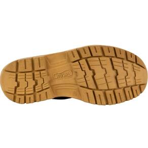 Especificações técnicas - Material do cabedal: couro nobuck marrom. - Solado: PU bidensidade (0,35 g/cm³ conforto + 0,47 g/cm³ abrasão) injetado ao cabedal. - Biqueira: PVC resistente a impactos. - Palmilha: não tecido montada pelo sistema Strobel. - Forro interno: não tecido com alta absorção e dessorção. - Fechamento: atacador em poliéster de 1,2 m e ilhós em gancho cor ouro velho. - Certificação: CA 40099.