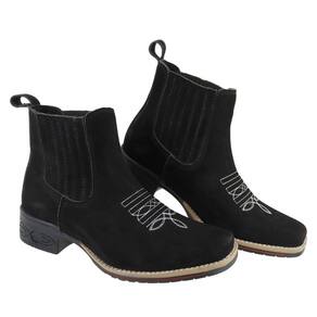 Botina Bota Country Texana Couro Bico Quadrado Bordada Puxador Traseiro Solado Borracha Costurado - Preto - 33