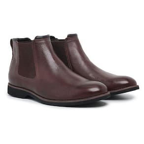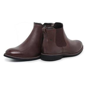 Botina Chelsea de Couro Masculina Bico Redondo Sola Borracha Confortavel Para Trabalho Dia a Dia - 44 - Marrom