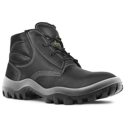 Características: Segurança: Botina de amarrar com biqueira composite, confeccionada em vaqueta hidrofugada preta, com fechamento atacador cadarço sem componentes metálicos, com membrana impermeável, costuras simples duplas e quádruplas feitas com linhas de nylon de alta tenacidade. Conforto: Forrado com sistema safetdry forro com duas camadas, sendo em tecido e outras em não-tecido, oque traz resistência e conforto , sem emendas, para oferecer conforto térmico, absorção e dessorção de suor. Solado: projetado com solado Falcon bidensidade PU/PU duas camadas de poliuretano injetado diretamente no cabedal. Biqueira: confeccionada com biqueiras de composite, seus ilhoses e passadores são de material não metálico.