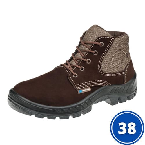 BOTINA DE SEGURANÇA NUBUCK BIDENSIDADE EM COR MARROM CAFÉ COM BIQUEIRA DE PLÁSTICO - Nº38 - MARLUVABotina de segurança confeccionada em couro nubuck hidrofugado, indicada para áreas administrativas, aventuras, mecânicas, montadoras, motoboys e prestadoras de serviços. Este calçado tem estrutura fibrosa e microporosa, que ajuda a manter a temperatura dos pés, colarinho e lingueta soft acolchoados. Ele apresenta fechamento em cadarço, solado isolante em PU bidensidade, injetado diretamente no cabedal, e palmilha de montagem em poliéster resinado.- Ideal para áreas administrativas, aventuras, mecânicas, montadoras, motoboys e prestadoras de serviços.- Tem estrutura fibrosa e microporosa, que ajuda a manter a temperatura dos pés.- Fechamento em cadarço.- Palmilha de montagem em poliéster resinado.- Solado isolante em PU bidensidade, com sistema de absorção de impacto, injetado diretamente no cabedal.CALÇADO DE SEGURANCATAMANHO: 38TIPO: BOTINAMATERIAL: COURO NOBUCKFECHAMENTO: CADARCOSOLADO: POLIURETANO BIDENSIDADEBIQUEIRA: PLÁSTICOCOR: MARROM CAFÉ***SELECIONAR CORRETAMENTE A NUMERAÇÃO POIS NÃO É POSIVEL ALTERAÇÃO POS COMPRA ****IMAGEM MERAMENTE ILUSTRATIVA*MARCA: MARLUVASCODIGO: 77650