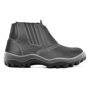 A Botina de Elástico Acolchoada Com Biqueira Plástica N44 4865AC/EL - Safetline, é um calçado indicado para uso geral, podendo também ser utilizada por eletricistas. Este modelo é confeccionado em vaqueta hidrofugada, um material que não retém água e retarda a passagem de líquidos. Além disso, o dorso e o calcanhar são acolchoados em napa, uma vaqueta macia que proporciona maior conforto aos pés e durabilidade ao produto.
