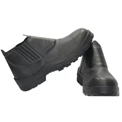 Descrição: Botina de Segurança, com elástico lateral recoberto, confeccionado em couro estampa relax, dorso acolchoado, forro interno na gáspea não tecido e forro do cano em sanitec dublado com manta de não tecido com tratamento antimicrobiano, bico plástico, palmilha de montagem não tecido, solado injeção direta MONODENSIDADE e sobrepalmilha antimicrobiana.